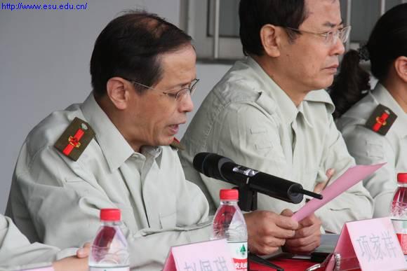 本次开营仪式由武装部部长许双全主持,学校党政领导和军训团领导参加仪式。开营仪式上,校长项家祥作了动员报告,他从国防教育的重要性和大学生成长的轨迹,鼓励新生要自强不息,在军训中学会吃苦耐劳,把军训学到的好的品行带进未来的学习生活中。项校长在讲话中还对东海舰队教官来我校指导学生军训工作表示欢迎与感谢。军训团团长魏海岭、教官代表蒲超立也作了讲话,他们表示一定要做到对学生严格要求,科学组训,文明示教,保证质量,完成军训各项任务。会计115班的陈扬同学代表全体参加军训的新生立下军令状,训练中一定高标准、严要求,向解放军学习,增强国防意识,体现大学生健康向上的时代气息。最后,副院长程龙根宣布2011级新生军训正式开始。党委书记赵佩琪向军训团团长魏海岭授予了上海东海职业技术学院军训团团旗。军训团团旗迎着初升的太阳迎风飘扬,我们相信,学生军训一定能圆满完成,训出风格、训出东海人的精神。(文/校学生会新闻部 张毅杰)