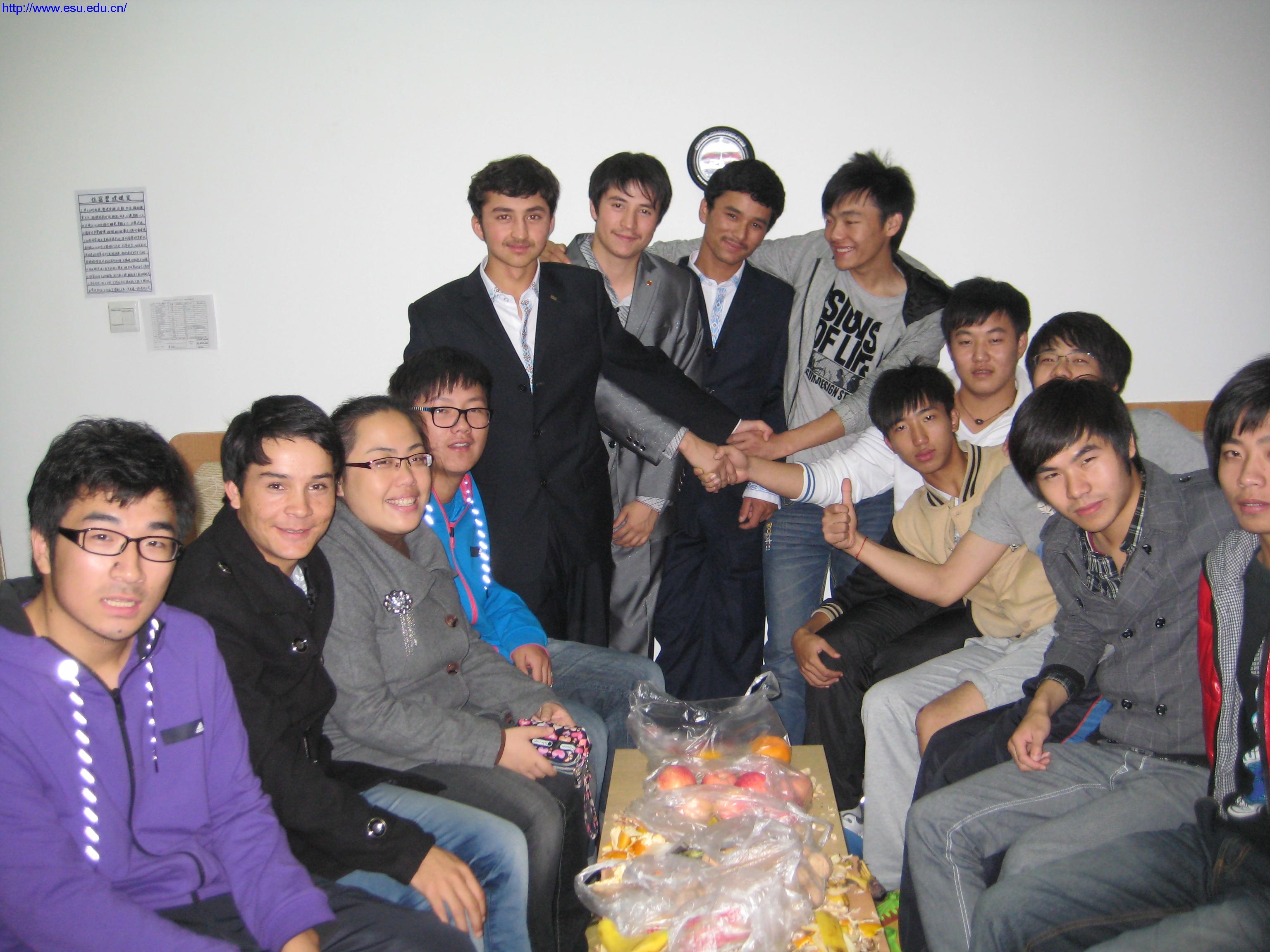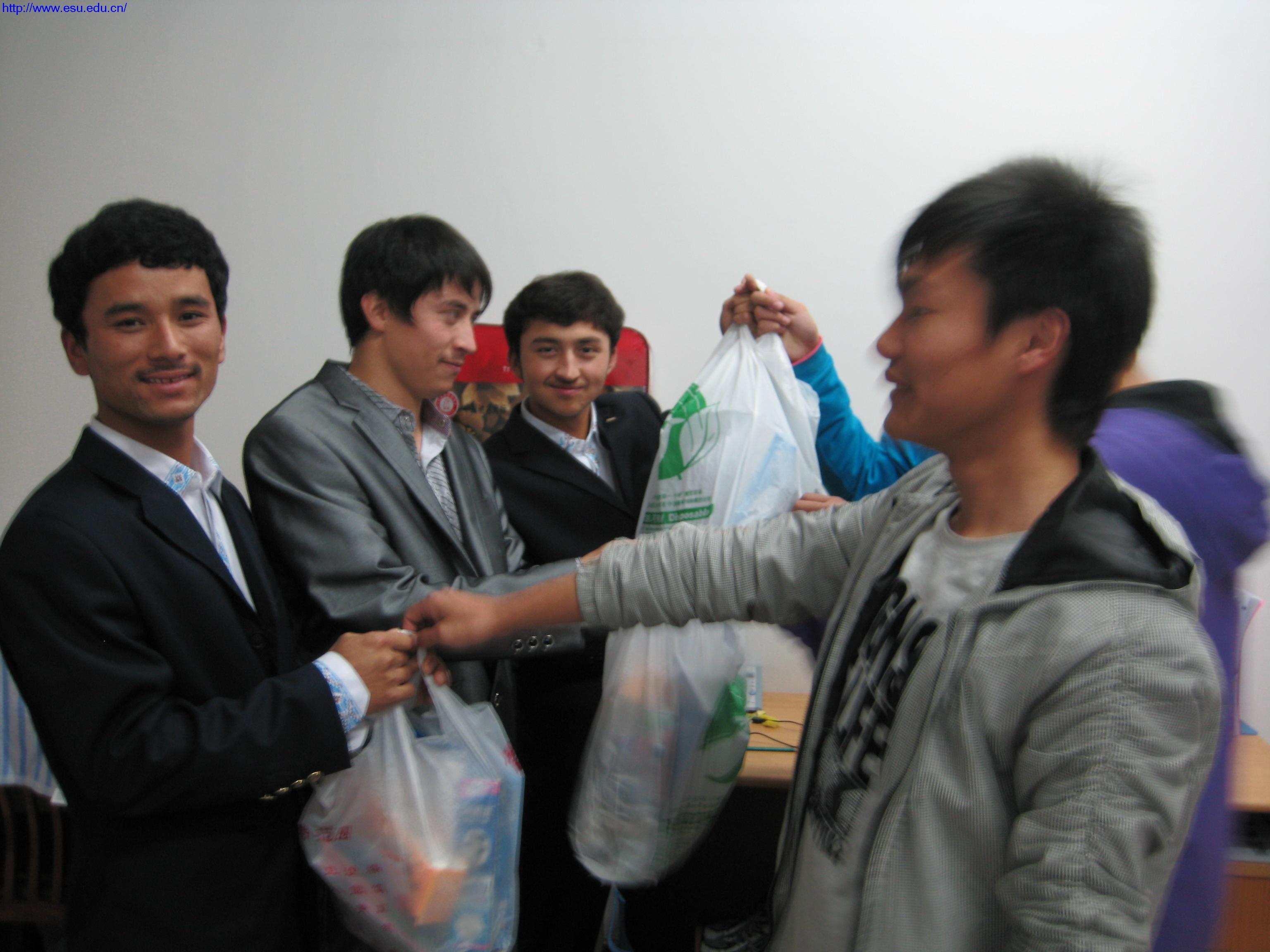 11月8日是传统的古尔邦节。当晚,汽修111班同学在辅导员杨佳翌系办蒋久泉老师的带领下,来到新疆班学生宿舍305室,向新疆同学赠送了围巾、篮球、笔记本等生活和学习用品,新疆同学拿出地方特产热情接待师生,大家在愉快轻松的氛围下渡过了一个节日的夜晚。