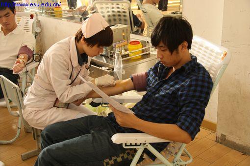 同学们义务献血中