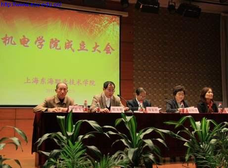 机电学院院长杨萍和教师代表袁冬琴发言后,项校长作了重要讲话,他指出:机电学院成立具有三个意义。第一,形成一种格局,工学交替,产学结合:学校长期在机电一体化、自动控制、电子电工实训室的基础上全力进行数控技术、汽车维修技术的实训室建设。一方面,数控、汽车维修技术人员的培养和训练符合上海先进加工业和先进服务业人才的需求,符合闵行地区老工业基地的需求。另一方面,学校也获得了多方面的财力和物力的全面支持,要把机电学院的实训中心建成高水平、现代化的实训中心,这将成为示范性教学单位。第二,搭建一个平台,优势互补,资源共享:学校成立机电学院,希望搭建一个平台,通过这个平台,进一步将数控、电气、模具、自动化、汽车整合成一个专业群,资源共享,优势互补,这些都属于机械大类的专业,知识点、知识能力结构有一定的关联,基础课程相通,组成学院可以在学院下设若干个系,使专业群有分有合,各有侧重,在这样一个专业群里,学生可以根据自己的能力、兴趣、个性发展选择专业、选择方向,成为有用的人才;第三,寄托一个希望,创新模式,永无止境:希望机电学院的师生凭借东海学院良好的发展态势,依托上海产业结构调整的宏伟战略,瞄准国家级示范性高职院校的建设标准,瞄准上海市085专业建设工程的目标要求,高水平、亮特色地建设机电学院,以重点建设专业带动机械专业群,希望机电学院在师资队伍建设、课程建设、专业建设、实训室建设、实习基地建设等方面作出表率,形成示范,使东海学院为上海和全国的高素质技能型人才培养作出更大贡献。