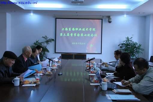 11月23日,我校第三届七次董事会会议在南807召开。董事长曹助我出席并主持会议,董事会成员李重华、陶钧、杜建坤、白芸、李小钢,项家祥、赵佩琪参加了会议。校长项家祥分四部分对学校近况作了汇报,与会董事就启动实训大楼项目和申办示范性高职院校的方案进行了充分的讨论。董事会成员对学校的规范化运作提出了更严格的要求,对学校的未来发展充满信心。