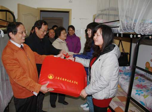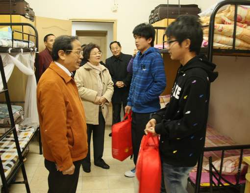 走进学生宿舍,项校长和赵书记便关切地询问了同学们的生活和学习状况,以及在生活中遇到的困难和问题,并关照同学们,天气逐渐转冷,注意保暖,适当运动。同时将过冬的毛毯送到家庭经济困难同学的手中,鼓励同学们要努力学习,自立自强,积极进取,以优异成绩和表现回报社会、家庭和学校。同学们纷纷向校领导表示感谢,一定会好好学习,报答学校、父母