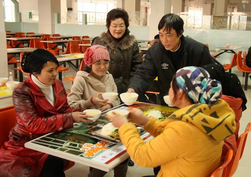 赵佩琪书记在食堂和同学们聊寒假见闻