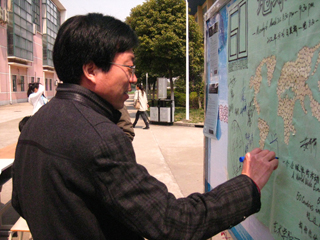 许多学生积极参与我们的活动,不仅在宣传栏上签下了名字还写了许多祝福语,纷纷签上了自己的姓名,志愿者们也在发宣传纸的同时告知同学们“地球一小时”的活动,希望号召更多的师生们为地球节能一小时。