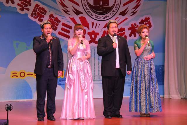 我校第三届艺术节活动之际,以“情满东海”为主题的新疆培训班学员文艺演出,