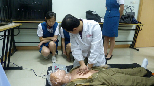 我校航空系在《航空卫生保健与急救》课程授课过程中,和护理系共享实训资源,共同合作,极大促进了航空系学生医疗急救技巧的业务水平。