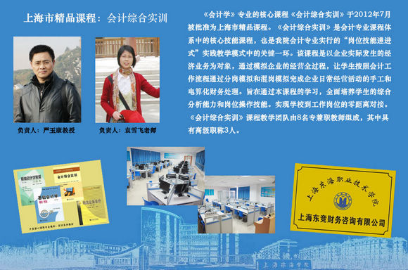 日前,上海市教委通过官方网站正式公布,经过各校申报,专家评审,网上公示等环节。我校经管学院申报的《会计综合实训》课程,被正式批准为上海市精品课程,这是经管学院继去年《进出口业务实训》课程被批准为市级精品课程后,在重点课程建设中取得的又一项重大成果。至此,经管学院承担的《报关与国际货运》、《会计》两大特色专业建设项目已分别具有了市级精品课程。