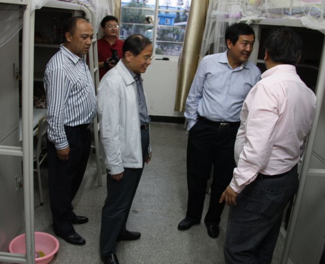 新疆喀什地区党政领导在我校领导陪同下前往学生宿舍