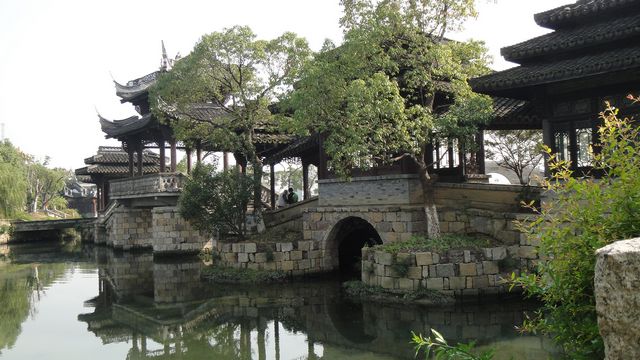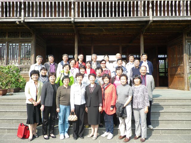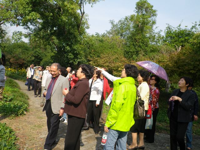 水博园地处闵行江川路3805号,那里地名叫“韩仓”,相传古代八仙之一韩湘子在此有一大片宅院,留下很多关于他的传说,所以园林取名“韩湘水博园”。园内环境优美,小桥流水、空气清新,曲径通幽,颇具特色。水博园毗邻黄浦江,园内的几十座石桥、砖桥以及亭台楼阁都是从全国各地运来异地再建的,设计精致考究,品味很高。天高云淡,老教师们漫步园中,兴致勃勃的观赏美景,摄影摄像。