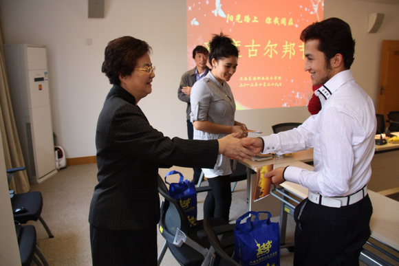 赵佩琪书记代表全校师生向29名新疆喀什地区维吾尔族学生致以节日的祝愿,祝他们身体健康,学习进步。赵书记说,这一年多来,看到全体同学勤奋刻苦,积极上进,用最短的时间克服了语言和生活习惯等方面的障碍,尽快适应了学校的生活,所有老师深感欣慰,希望大家在东海学院欣欣向荣发展的大好形势下抓住机遇,继续奋勇拼搏,努力学习,尽快成才。