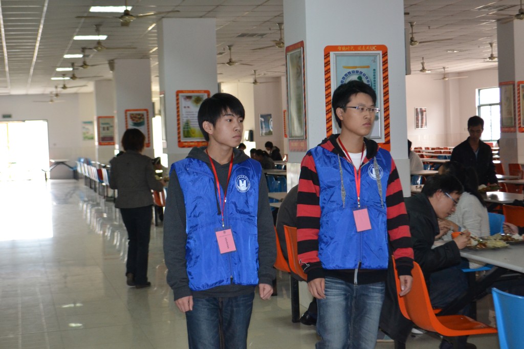 为了加强社会主义核心价值体系教育,提高学生思想觉悟,营造良好的学习生活环境,商贸学院“校园彩虹行动队”在第十周开展“爱护公物,文明就餐”活动。队员们统一身着“蓝马甲”,穿行于食堂和图文信息大楼等校园主要场所,对同学们的不文明行为进行劝导。此次活动的主要内容为宣传“爱护公物,文明就餐”、帮助食堂阿姨收拾别人没带走的餐具,在图文信息大楼记录公物损坏情况并报修等。