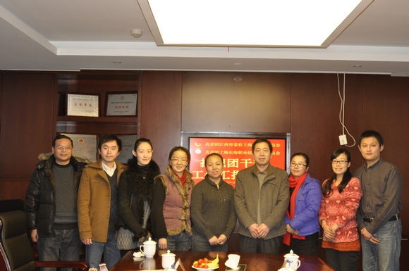 2013年新年之际,我校党委副书记王玉,学生工作部部长郁萍,学生工作部副部长蔡建平,团委老师胡忱等人一行看望共青团江西省委驻上海市工作委员会挂职锻炼的何曌老师,江西省人民政府驻上海办事处驻沪单位党委副书记、共青团江西省委驻上海市工作委员会书记陈卫星,团工委主持工作副书记谢丹,团工委副书记谢琼等人热情接待。