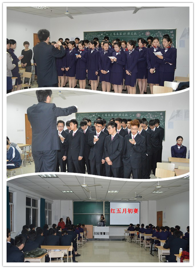 为了迎接我校建校20周年,纪念五四爱国运动,不断增加同学们的民族自信,丰富师生文化生活,增强班级同学的凝聚力。我系团委进行了第11届“红歌大接力·唱亮我红心”红五月歌会系内初赛,参赛班级分别为航维121、空乘121、空乘122三个班级,同学们高唱红歌,感情丰富,声音洪亮,同时系主