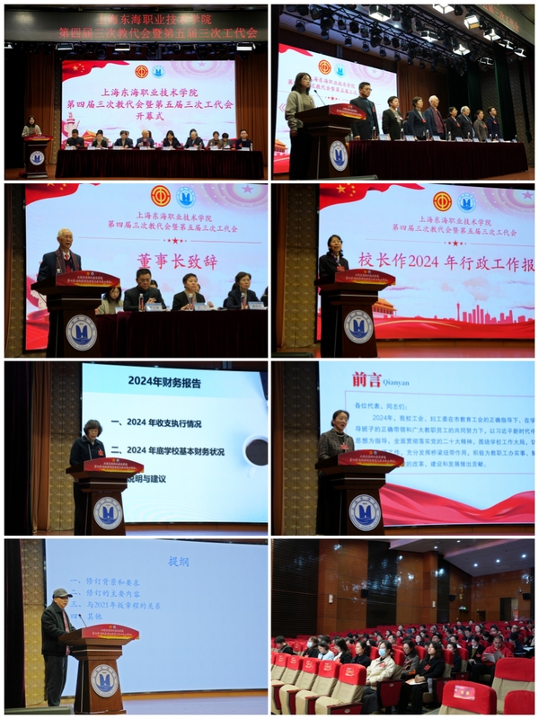 又讯 3月28日下午,东海学院第四届三次教代会暨第五届三次工代会闭幕式召开。会上选举了第二届监事会职工监事,并对学校领导班子进行了民主评议。评议结束后,校长贺瑛作各代表团讨论情况的汇总说明,党政办主任李建伟汇报了第四届二次教代会暨第五届二次工代会的提案办理情况,以及本次教代会、工代会的提案收集情况。代表们审议并表决通过了《2024年上海东海职业技术学院行政工作报告》《2024年上海东海职业技术学院财务报告》《2024年上海东海职业技术学院工会工作报告》《2024年上海东海职业技术学院工会经费审查委员会工作报告》《上海东海职业技术学院章程》。