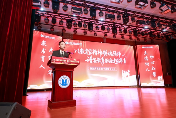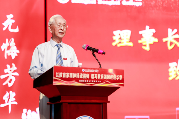 理事长曹助我在大会上致辞,代表学校理事会向全体教职员工致以最诚挚的节日问候和崇高敬意。曹助我表示,过去一年中,东海人始终秉持“匠心育人、职教报国”的信念,在教育教学、产教融合、技能竞赛、职教出海等多个领域取得了亮眼成绩,交出令人满意的答卷。面向未来,他提出应重点推进以下四方面工作:一是以AI赋能教育,争创全国民办高职标杆;二是推动产教融合深化升级,培养“懂技术、精技能”的复合型人才;三是加强师资队伍建设,对标国际标准,打造职业教育高地;四是坚持以学生为中心,努力培养时代新人,让每一位东海学子都成为“人生出彩者”。曹助我强调,教育是点燃火种,而非填满容器,职业教育更是托举学生梦想的重要力量。他希望全体教师以教师节为新点,紧紧围绕“改革、创新、超越”三大关键词,凝心聚力、携手共进,力争三年内推动学校跻身全国民办高职院校第一方阵!