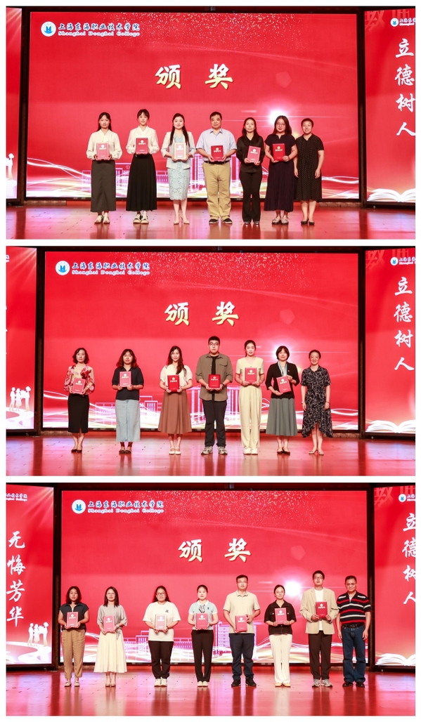 校长贺瑛宣读了《上海东海职业技术学院关于表彰2024-2025学年“校长奖”获奖团队的决定》,并分别为获奖的经管学院教学团队与机电学院教学团队颁奖。