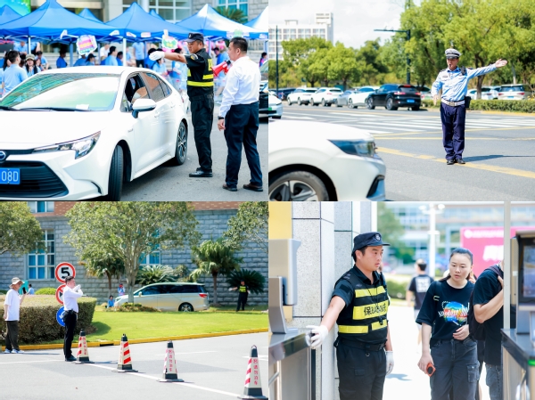 学校在各大路口及主干路段设置了清晰、醒目的指引标识,并积极协调辖区交警部门共同维护周边交通秩序。塘湾派出所派出警力与我校工作人员、学生志愿者协同配合,全力疏导车辆停放与通行,切实保障报到期间道路安全顺畅。面对迎新期间的高温天气,后勤保卫处贴心地为现场工作人员和新生准备了大型风扇及系列防暑降温设备,以周到细致的服务全力保障户外迎新工作的顺利开展。