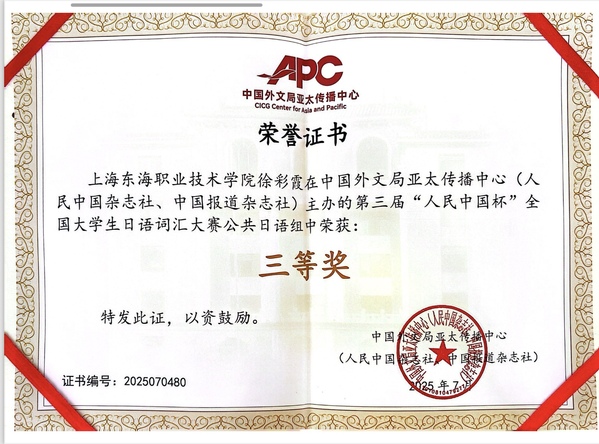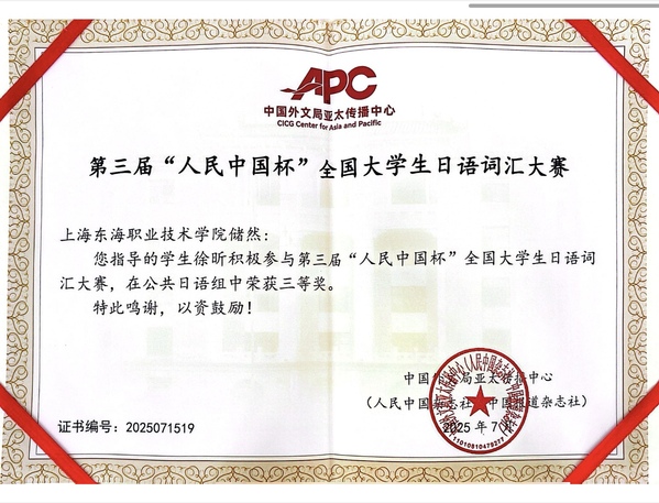 为备战此次比赛,语言教学中心日语教研室的教师们积极动员并组织学生报名。备赛期间,同学们充分利用课余时间刻苦学习、认真准备,不仅系统梳理和记忆了大量日语词汇,还广泛涉猎日本文化、文学及历史等相关知识,拓宽了文化视野,提升了语言综合应用能力。在赛场上,他们沉着冷静、灵活应对,展现出扎实的词汇基础和优秀的答题能力,彰显了东海学子的卓越风采。