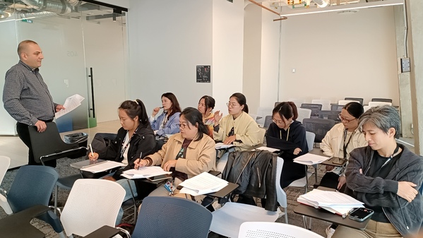 本次研修主要包括课堂观摩与专题研讨会两大部分。在课堂观摩环节,教师们深入加西大学多个英语课堂,亲身体验在跨文化背景下以学生为中心的教学实践,重点关注其课程设计、互动策略与沟通技巧,切实感受西方教育模式中的创新方法与课堂活力。在专题研讨会(workshop)中,双方围绕“人工智能在英语教学中的应用与挑战”以及“多元评估方法的重新定义与实践”等专题展开深入探讨。加西大学教授分享了AI辅助教学的看法,并就教师如何应对科技变革提出切实建议,引发了我校教师对教学评价体系改革的进一步思考。