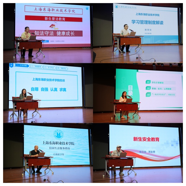 9月15日至16日,上海东海职业技术学院举办了2025级新生入学教育系列活动。本次活动共开展9场专题讲座,覆盖全校3200余名新生,围绕大学生活适应、规章制度学习与成长发展引导等多个维度展开,为新生尽快融入校园、规划学业奠定了坚实基础。