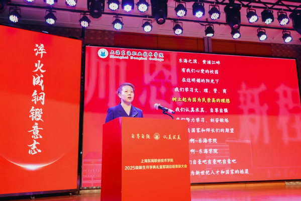 “真正的成长,始于对自我的敬重,成于对真理的追寻。东海的故事等待你们挥毫续写,东海的未来必将因你们的奋斗而更加闪耀!”校长贺瑛在讲话中满怀期待地对全体新生寄予厚望。她对学生们提出了三点希望:一是将个人理想融入民族复兴新征程,刻苦学习、锤炼技能,未来以精湛技艺服务国家需要、社会发展和民族复兴伟业。二是珍惜时光、主动规划,在自主探索中锻炼思维,持续优化学习方法、养成良好习惯,逐步锻造出扎实而不可替代的核心竞争力。三是以豁达开放的心态尊重差异,以主动合作的姿态凝聚共识,通过大学三年的历练,不仅获得知识与技能,更收获精神的成熟与格局的开阔,成长为更好的自己。