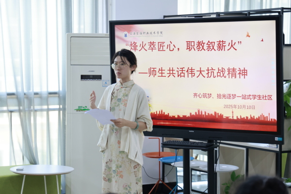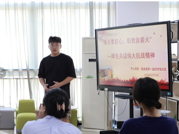 10月10日中午,7、10号楼一站式学生社区举办师生共话伟大抗战精神活动,马克思主义学院院长助理施晓玮、专业教师王斌和梁艺馨、机电学院专业教师徐兰和贺建丽、及辅导员代表代征和倪晨参加,活动由机电学院党支部书记沈艳主持。
