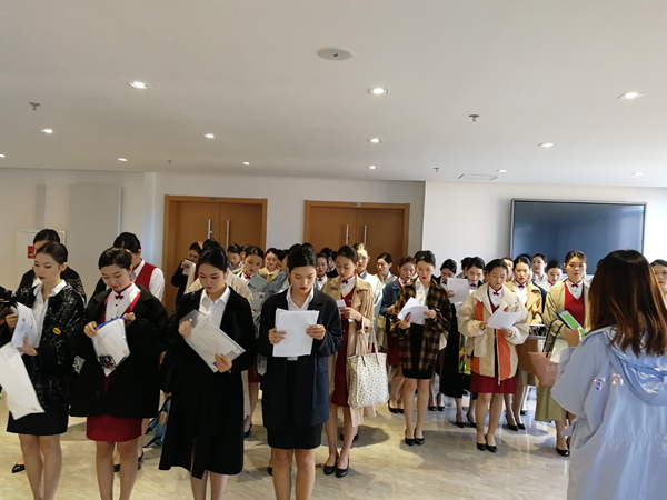 如此高标准的选拔自然历时甚久,直到晚间20时,当天的招聘才告一段落。虽然辛苦,但训练有素的航空学院学生们把最佳状态一直保持到了最后,给春秋航空的招聘人员留下了深刻的印象。春秋航空招聘处经理肖飞在感谢学校为他们提供了良好的招聘场所和后勤服务的同时,也对东海学子的素质赞不绝口,能选拔出尽可能多的合意人选,无疑是春秋航空和东海学院共同的收获。最终,共有77人脱颖而出,他们将于11月14日参加复试,为直上云霄作最后一搏。