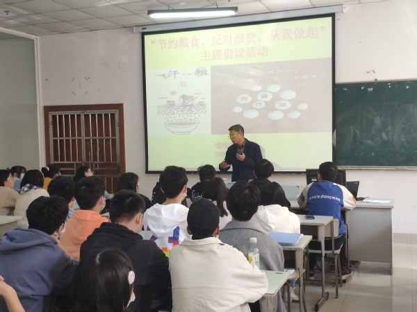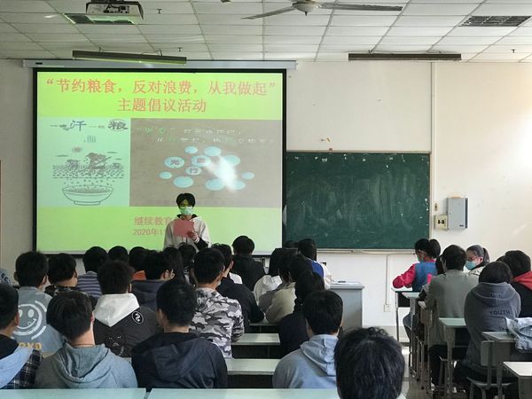 11月12日,继续教育学院举行“珍惜粮食,节约资源,从我做起”主题倡议活动,分团委书记徐广志主持,全体教师和学生代表参加。