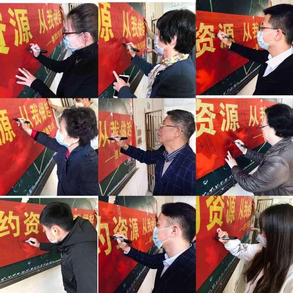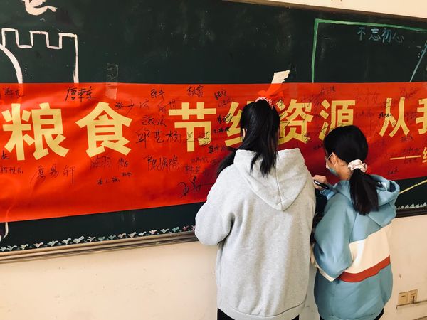 学生会常务副主席秦兴南向全体师生发出倡议,在场的所有师生以宣誓的形式响应倡议,表示会从自己做起,从身边做起,珍惜粮食,节约资源,做节约粮食反对浪费的践行者和宣传者。师生们在“珍惜粮食,节约资源,从我做起”的宣传横幅上签字并合影。