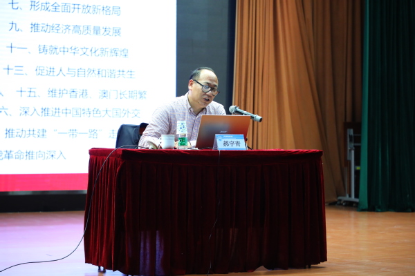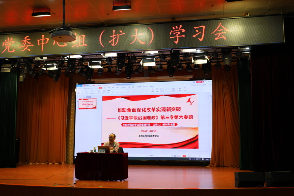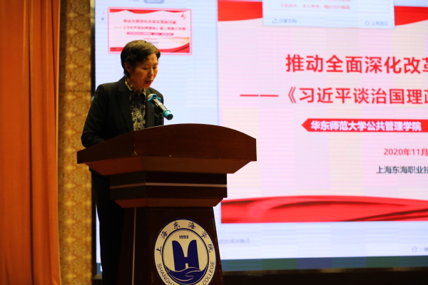 11月13日,华东师范大学公共管理学院教授郝宇青应邀到东海学院作《推动全面深化改革实现新突破—<习近平谈治国理政>第三卷第六专题》专题讲座,我校全体党员、高级党校学员200余人在东海源报告厅聆听讲座,校党委书记曹蓉蓉主持讲座。