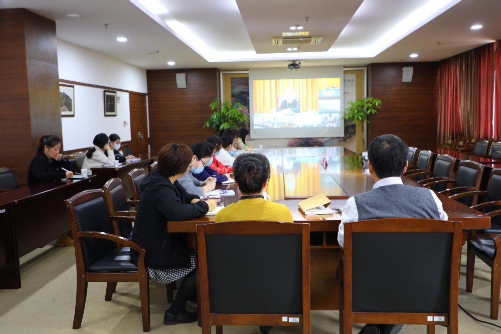 11月17日下午,我校组织观看学习贯彻党的十九届五中全会精神中央宣讲团报告会视频,校长王刚、副校长郁萍及2020级辅导员在东海源大楼南807会议室观看报告。