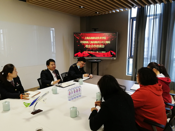 在洽谈会上,周孟华和张春向上海站领导详细介绍了我校相关专业建设和毕业生的基本情况,并邀请他们现场观摩了空乘专业的实训课教学。东海学子未加修饰的精神风貌给来宾们留下了深刻的印象,上海站几位领导都对现场学生的总体素质赞不绝口。胡荣华相信东海毕业生完全符合上海站的招聘需求,双方建起更深层次的合作关系可以说互惠互利,无论是从学生培养角度还是从上海站业务开展角度来说都能形成良好的衔接,并与我校就进一步加强宣传和交流、开展定向培养、课程建设融合岗位培训等问题达成了一致。