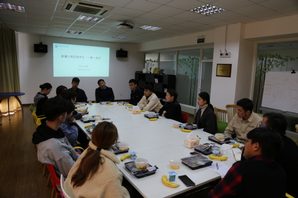 为进一步促进校领导与新疆学生的交流,形成“聆听学生心声,贴近学生需求,促进学校发展”的良好氛围,学生工作部于12月1日中午组织开展“一餐一席谈”——校领导与少数民族学生午餐会。本次活动以“融入、和谐、自立、自强”为主题,党委书记曹蓉蓉、党委副书记王玉、校长助理黄樑及来自7个学院11位学生参加。
