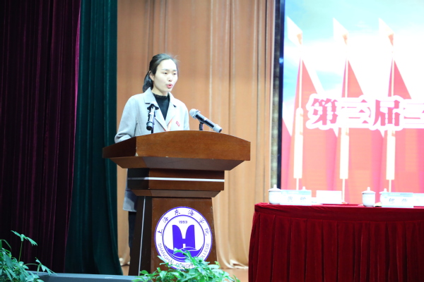 12月4日上午,东海学院第三届三次教代会暨第四届三次工代会在东海源大楼报告厅举行,主席团成员在主席台就座,正式代表出席会议,部分教职员工列席会议。工会副主席杨超英主持。