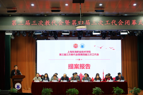 会上表决通过了《上海东海职业技术学院校长工作报告(含财务报告)》《上海东海职业技术学院工会工作报告》《第三届三次教代会暨第四届三次工代会决议》,通过了《上海东海职业技术学院人事制度改革报告》和《上海东海职业技术学院集体合同》。