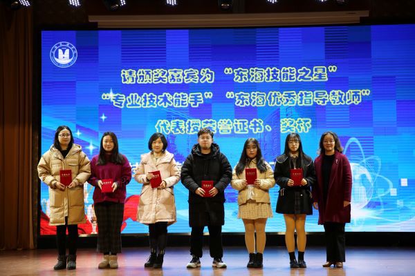 校党委书记曹蓉蓉宣读我校《关于授予朱珂等18位学生“东海技能之星”的决定》《关于授予苏友梅等26位学生“专业技术能手”的决定》及《关于授予张戈等4位老师“东海优秀指导教师”荣誉的决定》。我校2020年“东海技能节”于11月13日正式启动,历时一个多月,共开设36项竞赛项目(对接“星光大赛”赛项16项),参加竞赛学生数达2978人,其中432位学生获奖。