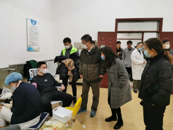 活动期间,校长王刚等校领导一行到现场慰问献血师生,与他们亲切交流,叮嘱他们注意采血后注意休息,在体力恢复后再进行剧烈运动。