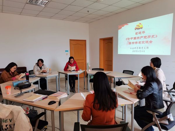 社科部副主任龙燕解读了学校党史学习教育活动的实施方案,结合学校开展的读书节,社科部党支部书记陈飞带领大家认真学习习近平《论中国共产党历史》,读书会上,大家各抒己见,对党团结带领中国人民不懈奋斗的光辉历史和各个历史时期创造的理论成果,积累的宝贵经验和铸就的伟大精神感慨万千,纷纷表达要从日常学习工作中着力在“学史明理、学史增信、学史崇德、学史力行”上下功夫,不断提升自身的党性修养,补给思想境界的精神养分的坚定决心。