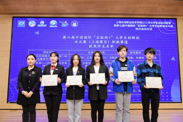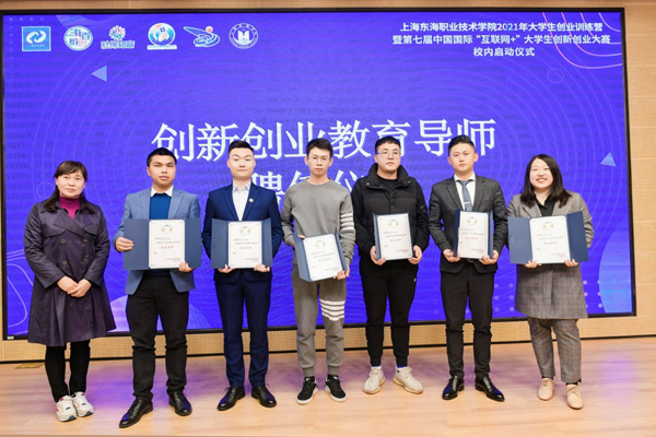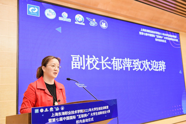 在激动人心的乐声中,上海市学生事务中心、闵行区就业促进中心、吴泾镇社区事务受理服务中心、学校以及合作园区的领导共同上台,正式开启了上海东海职业技术学院2021年大学生创业训练营暨第七届中国国际“互联网+”大学生创新创业大赛校内选拔赛。