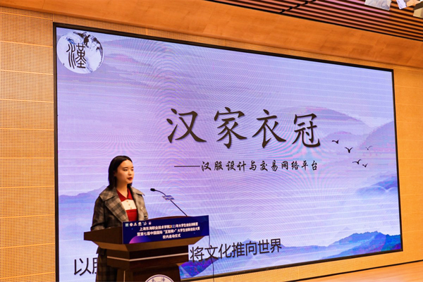 为表彰先进,鼓励更多优秀大学生投身创新创业,本次开营仪式同时举行了第六届中国国际“互联网+”大学生创新创业大赛颁奖仪式,5支去年在“互联网+”大赛上海市选拔赛中取得优异成绩的双创团队以及3位指导教师获得表彰。航空学院学生胡伊心对获奖项目《汉家衣冠-汉服设计与交易网络平台》作了现场展示,安慧璇则作为指导教师代表介绍了自己帮助项目团队一步步成长完善的心得体会。