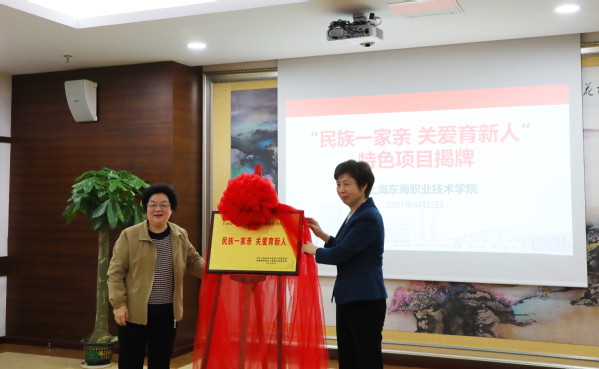 与会领导为我校关心下一代工作特色项目“民族一家亲,关爱育新人”揭牌。该项目依托“东石榴”学生发展工作室,邀请学校“五老”成员参加少数民族学生学习活动,引导他们增加国家认同感、文化自信以及中华民族共同体意识教育,使他们受到实实在在的理想、信念教育。
