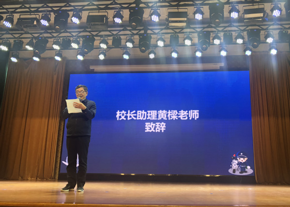 东海学院校长助理黄樑首先致辞。他代表学校领导和广大师生对闵行分局反诈中心、塘湾派出所领导和警官莅临我校开展防诈骗指导工作表示热烈欢迎。黄樑指出,近段时间,电信诈骗案件频发,诈骗手段越来越多,学生群体社会经验不足更容易受骗上当。为进一步强化校园安全工作,加强反诈骗宣传力度,持续遏制诈骗案件高发态势,不断提升全体师生安全意识和增强反诈骗能力,切实维护广大师生权益,保证师生财产安全,学校立足校情实际,与闵行公安分局反诈中心、塘湾派出所联合启动警校反诈新机制,通过建立辅导员反诈专员制度,指定有针对性、可操作性的宣传方案,开展特色的主题宣传活动,做好防范教育,推动防诈安全教育制度化、常态化和机制化,对提高学生反诈警觉意识、维护校园的安全稳定有着重要作用。
