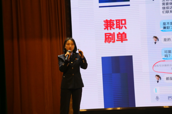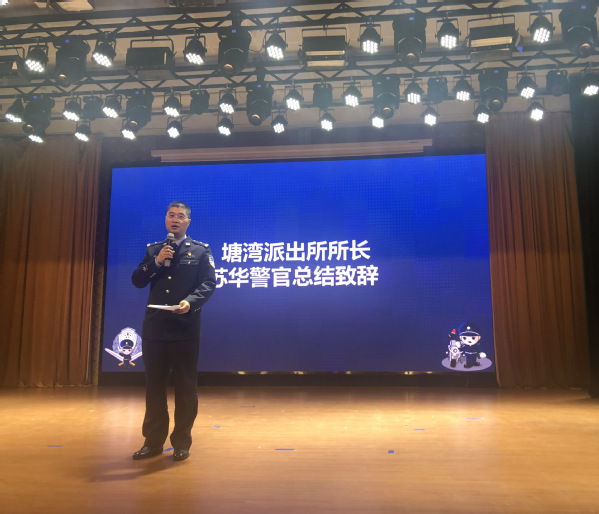 最后,塘湾派出所所长苏华警官作总结讲话。苏华强调,电信诈骗仍是日常生活中主要的诈骗方式,要通过各种形式开展宣传教育,此次警校联动反诈专员制度可以更好地守护学生安全,为学生健康成长保驾护航。希望学生们遇到疑似诈骗的时候,做到不听不信不转账不汇款,及时联系辅导员、保卫处老师和民警同志。我们一起携手,更好的守护大家的安全。