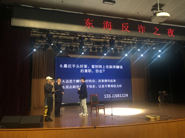 文艺演出环节,鼓蓥红格子艺术团和我校吉他社为大家带来了快板《反诈骗》、吉他弹唱《不要理会》等具有特色的防诈骗宣传形式活动, 起到了良好的教育效果。