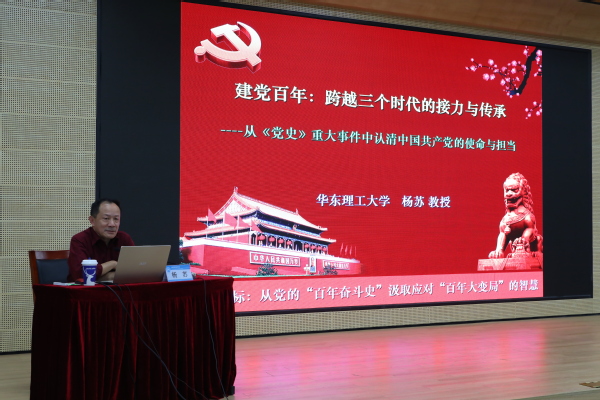 5月7日下午,华东理工大学教授杨苏应邀为东海学院党史学习教育培训班学员上了一堂精彩的党课,他通过“建党百年:跨越三个时代的接力与传承——从《党史》重大事件中认清中国共产党的使命与担当”主题讲座,详细阐述了中国共产党建党百年来的奋斗与发展,启发全体学员从党史学习中汲取智慧与力量,认清责任与担当。
