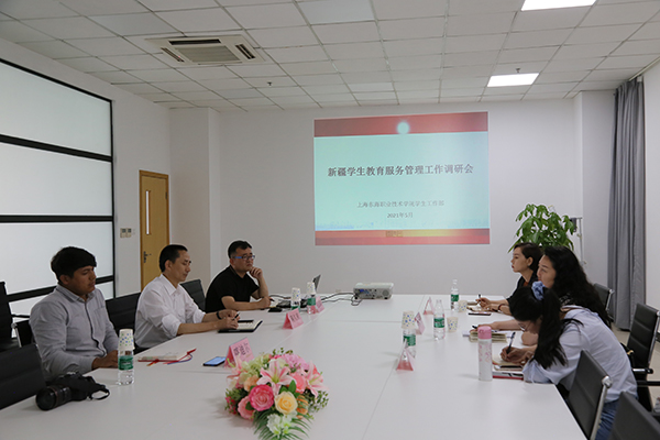 5月27日上午,新疆驻沪工作组党委副书记,教育协调小组组长谢昌蓉,副组长王文虹,协调小组联络员张明雪一行专程来我校就新疆籍学生的教育管理工作进行调研,我校学工部部长杨瑾、保卫处处长蒋久泉、学工部新疆办主任孔国锋、少数民族专职辅导员喀迪尔·图拉克参加了座谈和交流。