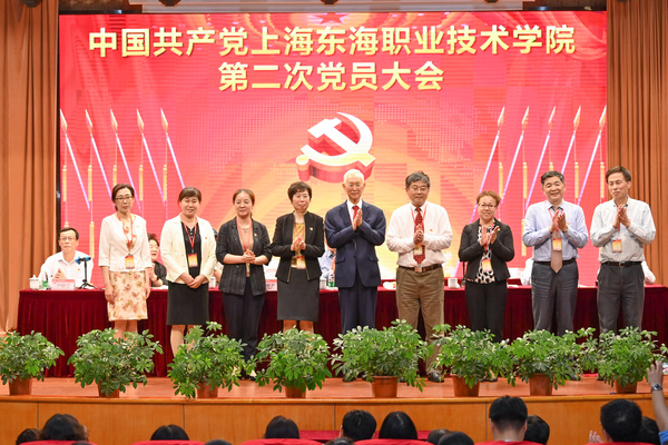 尹福会同志宣读了《中共上海市民办高校工作委员会关于同意中共上海东海职业技术学院第二届委员会委员、纪律检查委员会委员组成人员候选人预备人选的批复》。大会第二次全体会议根据党章的有关规定,经到会代表充分酝酿讨论,采取无记名投票方式和差额选举的办法,选举产生了中国共产党上海东海职业技术学院第二届委员会和纪律检查委员会,王玉、王刚、许岚、郁萍、卓丽环、顾文业、黄樑、曹助我、曹蓉蓉(按姓氏笔画为序)9名同志当选为第二届党委委员,王玉、朱新华、杨超英、张居阳、施晓玮(按姓氏笔画为序)5名同志当选为第二届纪委委员。