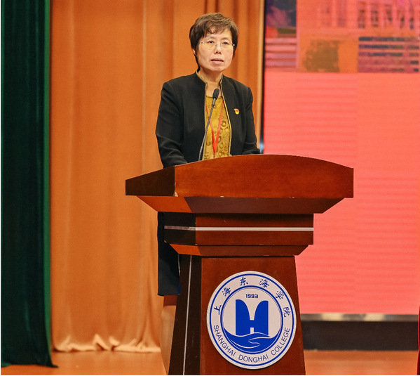 大会在激昂雄壮的国歌声中拉开帷幕,曹蓉蓉同志代表中共上海东海职业技术学院第一届委员会作工作报告。她以《凝心聚力,真抓实干,改革创新——为建设上海一流、全国知名民办高职院校而努力奋斗》为主题,回顾了学校本届党委和纪委过去五年的工作,并明确了未来五年的主要任务。她说,过去五年是学校应对挑战,经受考验,求真务实,快速发展的五年。校党委在市教卫工作党委、市民办高校党工委的正确领导下,在董事会、校行政的大力支持下,紧紧围绕“立德树人”根本任务,按照“围绕发展抓党建、抓好党建促发展”的工作思路,坚持正确的办学方向,全力保障学校“十三五”发展规划的各项任务完成,使学校发展进入历史发展最快时期,为服务地方经济和社会发展,培养高素质的技术技能人才作出应有贡献。她指出,在总结成绩的同时,我们更应清醒地认识到工作中存在的不足及努力的方向,下一步我们将进一步解放思想,改革创新,破解难题,砥砺前行。她强调,在建党百年之际,要从非凡的百年党史中汲取智慧力量,从东海28年奋斗历史中汲取精神力量,为党育人,为国育才,培养更多的高素质技术技能人才。她希望全体师生不忘初心、牢记使命,紧紧围绕国家职教发展战略,为学校“十四五”发展开好局,以更大力度、更实举措推进学校改革发展,以永不懈怠的精神状态和一往无前的奋斗姿态,团结带领全体党员和广大师生用奋斗拥抱新时代,用实干开启新征程。