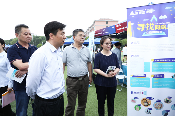 招聘会上还举办了创聚乐业东海学院服务站入驻启动仪式及上海东海职业技术学院与莲谷新兴科技产业园区“就业交流合作基地”揭牌仪式,进一步加强了学校与区、镇相关部门与园区的合作力度。对此陈铁民给予了高度评价,他认为招聘现场氛围良好,现场企业和岗位质量优异,反映出我校毕业生素质已得到了社会的高度认可,同时也从侧面体现了我校扎实的办学理念和扎实的教学方法。他还希望我校能进一步探索镇校合作模式,加强学校与园区精准对接,强化基层部门服务能力和质量,扎实做好毕业生离校前后的衔接工作,确保毕业生找到满意工作。