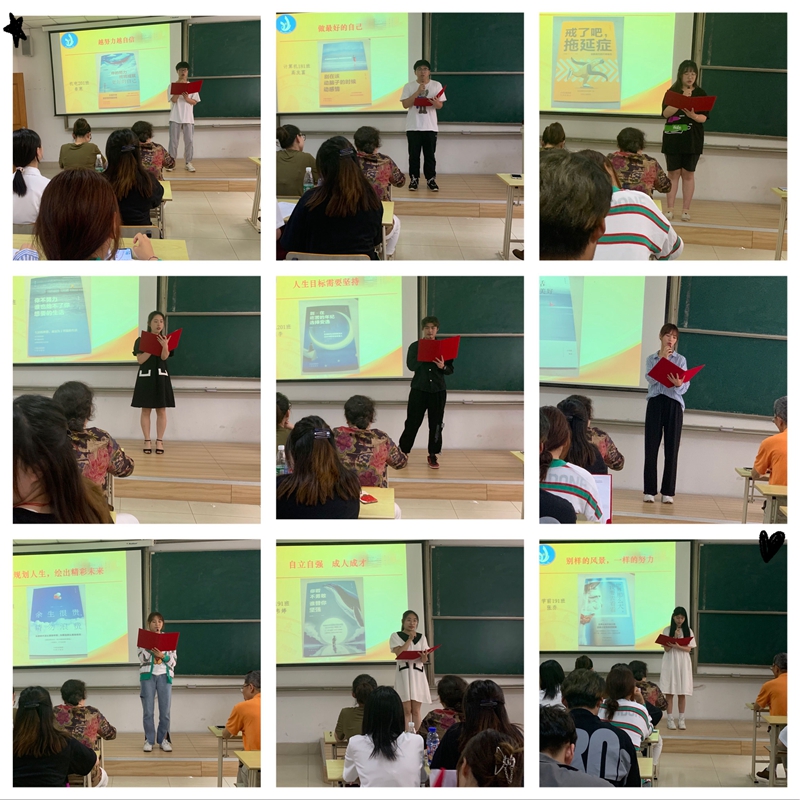 两个月前,作为为群众办实事的项目,学院党支部为每个班级赠送一套积极向上的励志书,以这些励志书籍为载体,开展“自尊自强,认真求真——迎接建党100周年学生读书活动”,并举办了隆重的赠书仪式,部署开展读书活动具体要求。两个月来,学生们在辅导员的带领下认真读书,各班级开展了读书小组组建、课下自读、摘抄金句、集体交流等形式多样的读书活动。学院全体学生参与读书,每人都撰写读书心得,在班级读书心得交流会上选拔代表参加学院的交流评比。